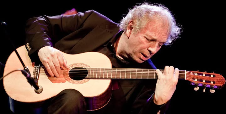 Not really, no. I wasn’t that into guitar players, to tell you the truth. I knew the more modern guitar players, of course. Scofield, Abercrombie, McLaughlin and I lived within a three square block range of each other in Manhattan at one point, and we all played together in jam sessions and things. But electric guitar players, that’s another instrument, really. Classical guitar really is a kind of a child of the piano. It descends from the lute and other instruments that are plucked with all the fingers of the right hand, which enables you to control all the volume and length of the different notes…to really have a lot more control. And as I say, the tradition is pianistic and from Baroque time and pre-Baroque Renaissance stuff. So my whole thing is, I’m a piano player, really, and was pressing that really strongly at one point because of this whole incredible impact that Bill and Scott and Paul had on me back in 1961. And when I bumped into this classical guitar, I thought, “What a fascinating instrument!”